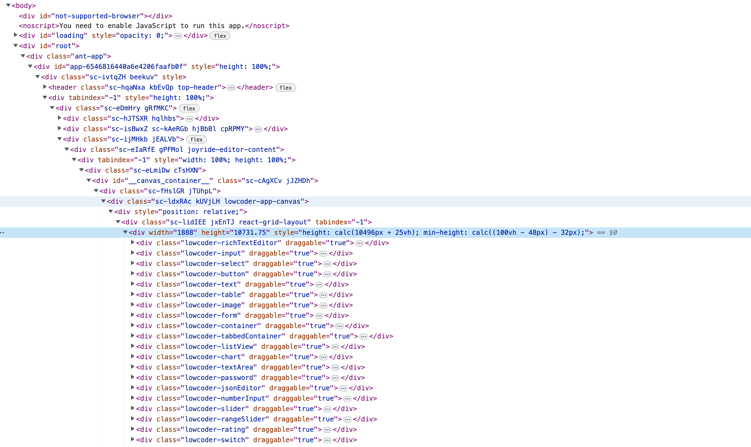 Each Lowcoder Component has a root element with the CSS class name "lowcoder-\<component-type>. This identifies the class, not the individual item. In styles that you develop for components, you can use this global class identifier to make sure your styles apply only to all children of a component type.