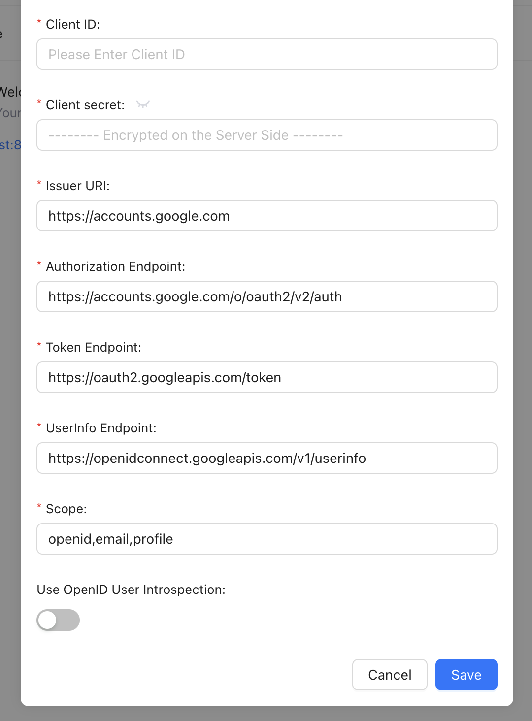 Some providers do only support OAuth - but not (yet?) OpenID. This means that the User Introspection Endpoints /userinfo are not available. For this case you can activate or deactivate this Introspection. (This function comes into effect at Lowcoder v2.4.1)